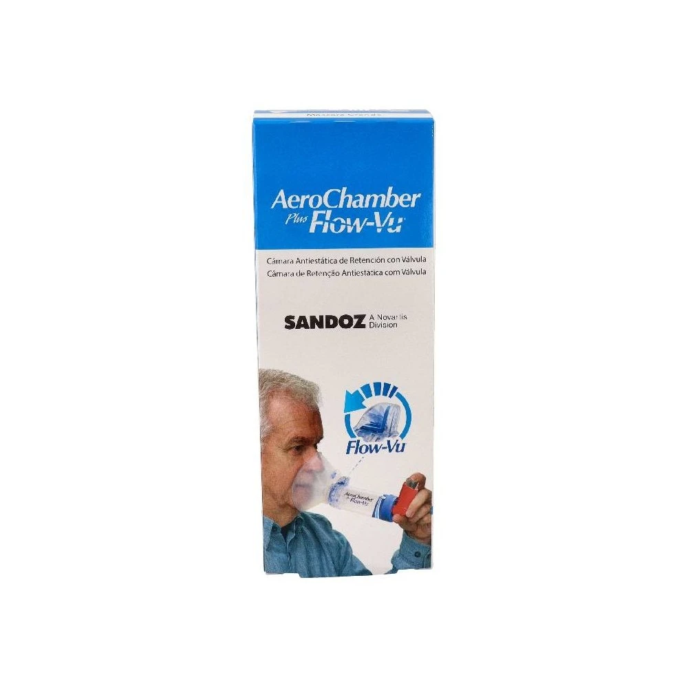 Cámara antiestática de retención con válvula para su uso con inhaladores en aerosol. La cámara antiestática permite que la medicación permanezca más tiempo para ser inhalada.La máscara garantiza el cierre hermético de la mascarilla:- máscara neonatal: 0-18 meses- máscara pediátrica: 1-5 años- boquilla: +5 años- máscara grande: +5 años. La válvula de exhalación garantiza un administración eficitente del aerosol.Válvula de inhalación unidireccional altamente sensible. Indicador de flujo inspiratorio Flow-Vu.Adaptador universal pMDI reforzado.