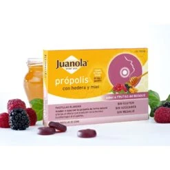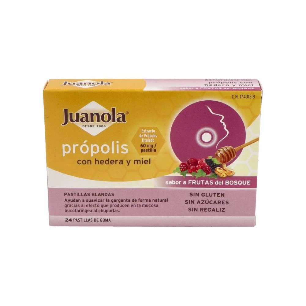 Juanola própolis + hedera con miel son unas pastillas blandas que combinan el efecto del extracto de própolis (60 mg/pastilla), el extracto de Hedera helix (12 mg/pastilla) y la miel (10 mg/pastilla) para suavizar la garganta gracias al efecto que producen las pastillas en la mucosa bucofaríngea al chuparlas.