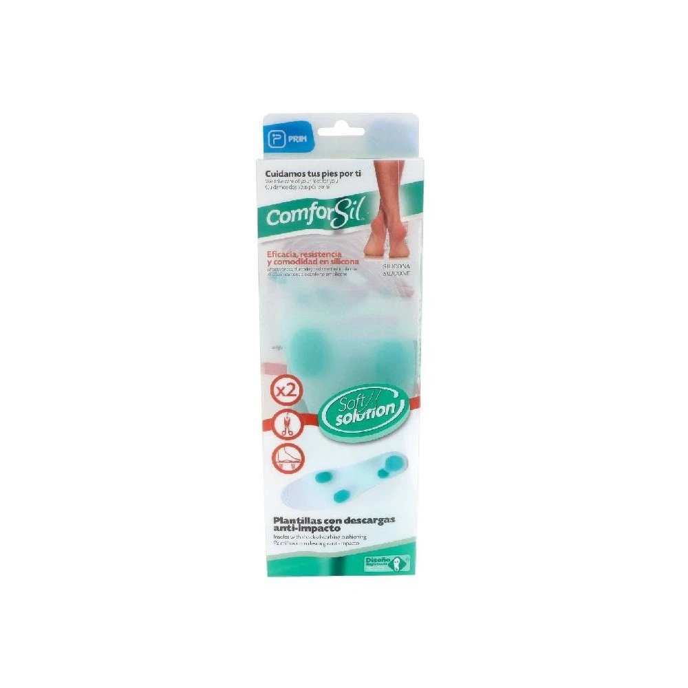 Las plantillas de silicona están fabricadas en dos densidades, absorben los impactos y los choques contra el suelo al caminar.
