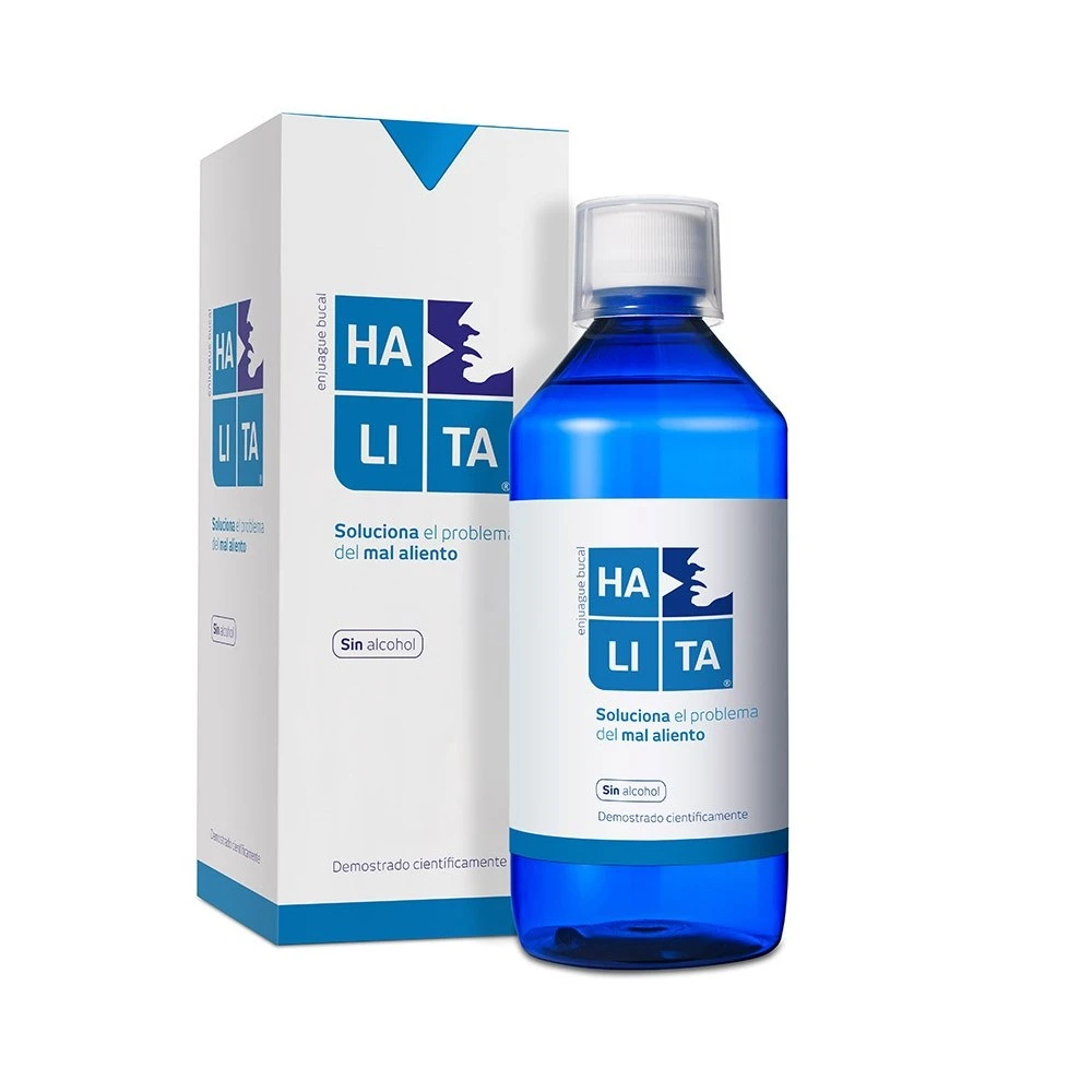 Con sólo dos enjuagues bucales al día, HALITA® colutorio actúa de forma rápida y eficaz frente a las bacterias. La combinación de Digluconato de Clorhexidina y Cloruro de Cetilpiridinio prolonga la acción antiséptica de los dos componentes para un mayor control bacteriano y una disminución de la producción de gases malolientes.