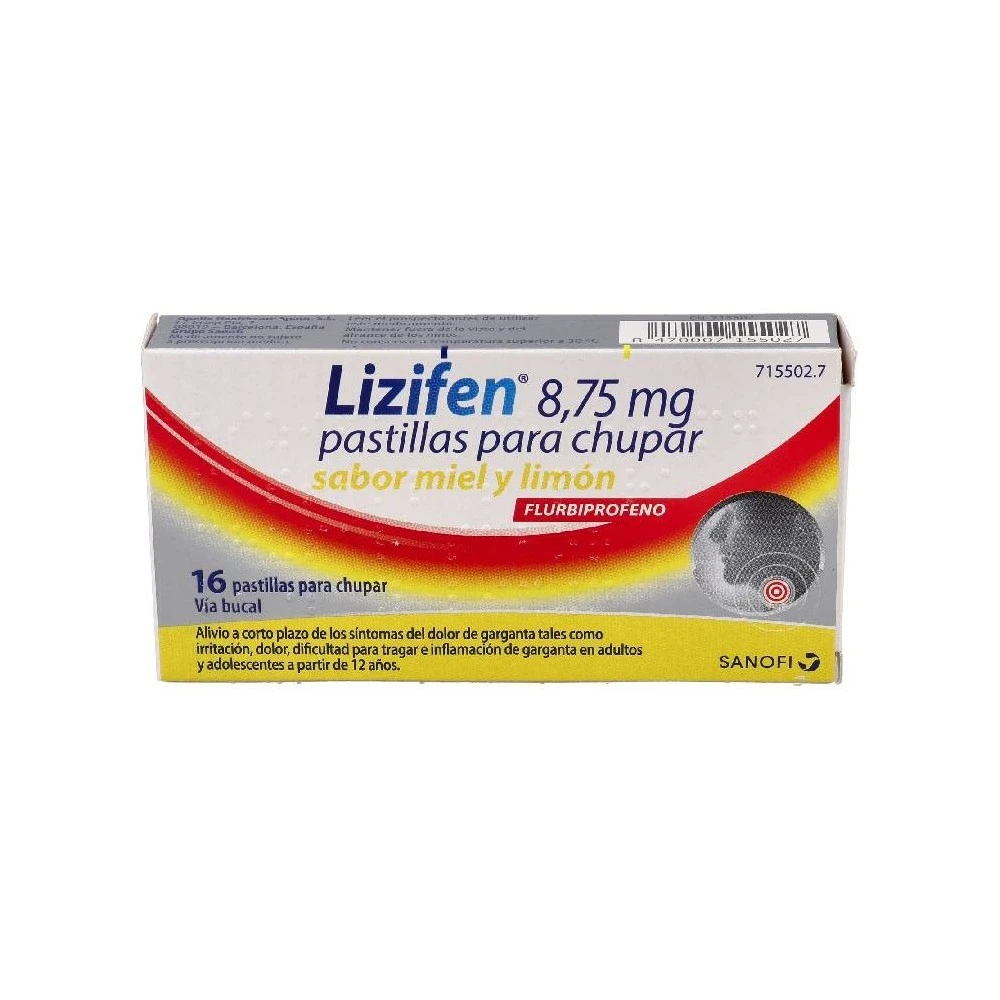 Lizifen® Pastillas para chuparGracias al flurbiprofeno, Lizifen® 8,75mg pastillas para chupar tiene una doble acción analgésica y antiinflamatoria, que ayuda a aliviar el dolor de garganta a corto plazo. El efecto calmante de Lizifen® se nota a partir de los 2 minutos.