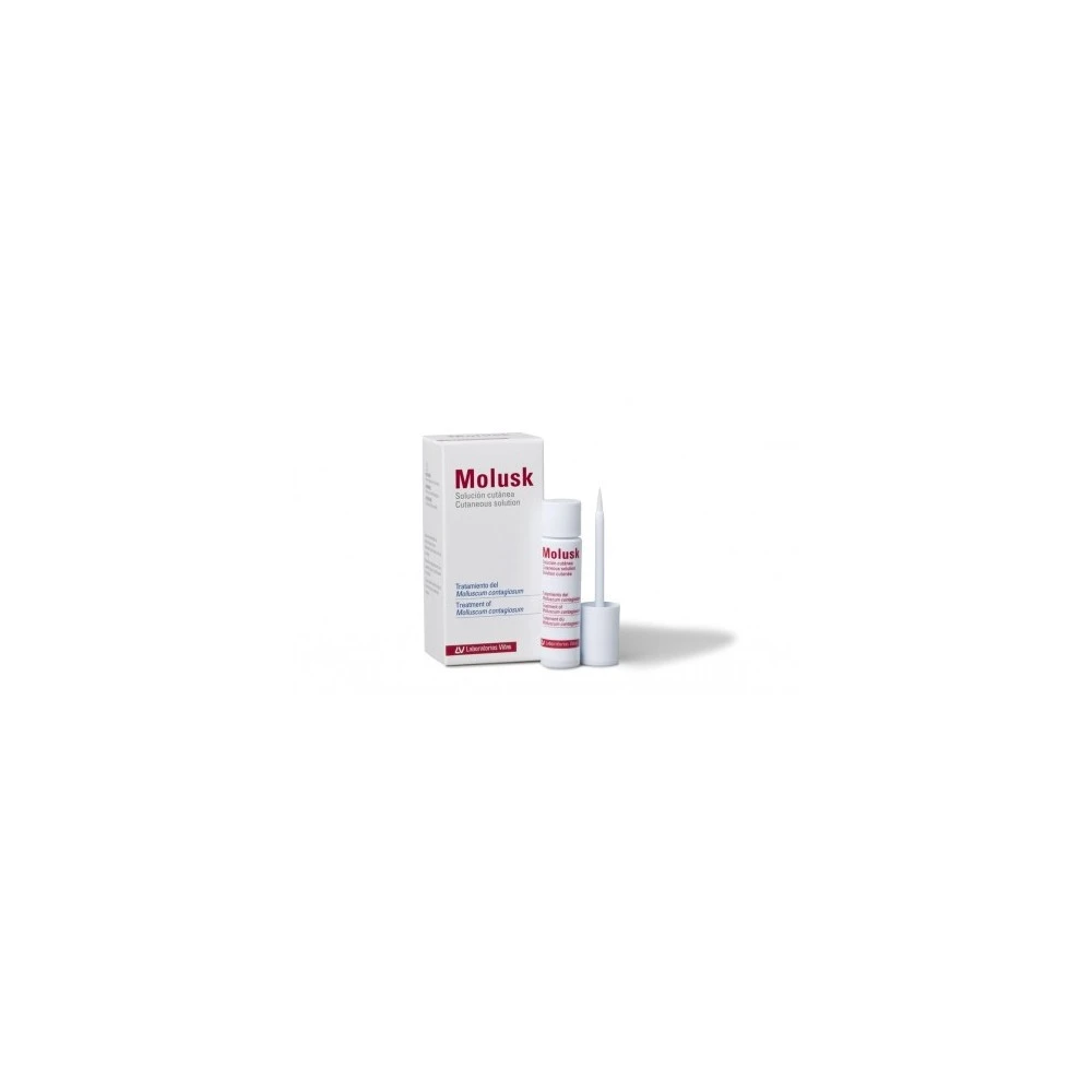 Molusk es un tratamiento incruento, eficaz, rápido e indoloro para el Molusco Contagioso. Su ingrediente principal es el hidróxido de potasio al 10%, la concentración más avalada en publicaciones científicas de referencia en dermatología para el tratamiento del Molluscum Contagiosum.