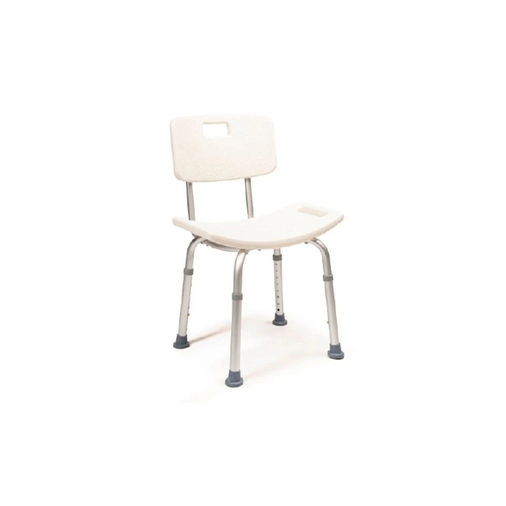 Silla de aluminio con respaldo, regulable en altura independiente en cada pata.