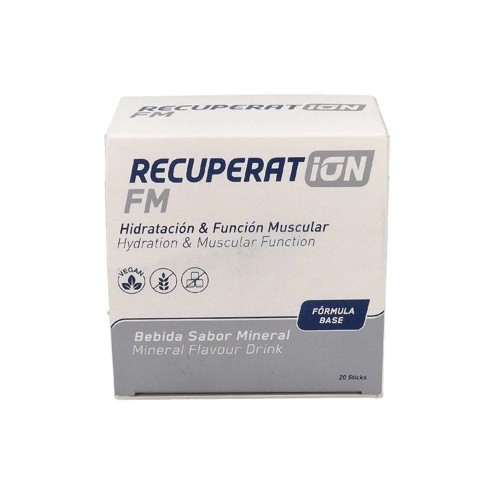 RECUPERAT-ION FM es una bebida hipotónica con sales minerales científicamente formulada para obtener una profunda remineralización de los músculos, restableciendo así el equilibrio iónico. En su composición encontrarás sales minerales (Sodio, Potasio, Calcio, Magnesio) diseñada para aportar líquidos y sales.