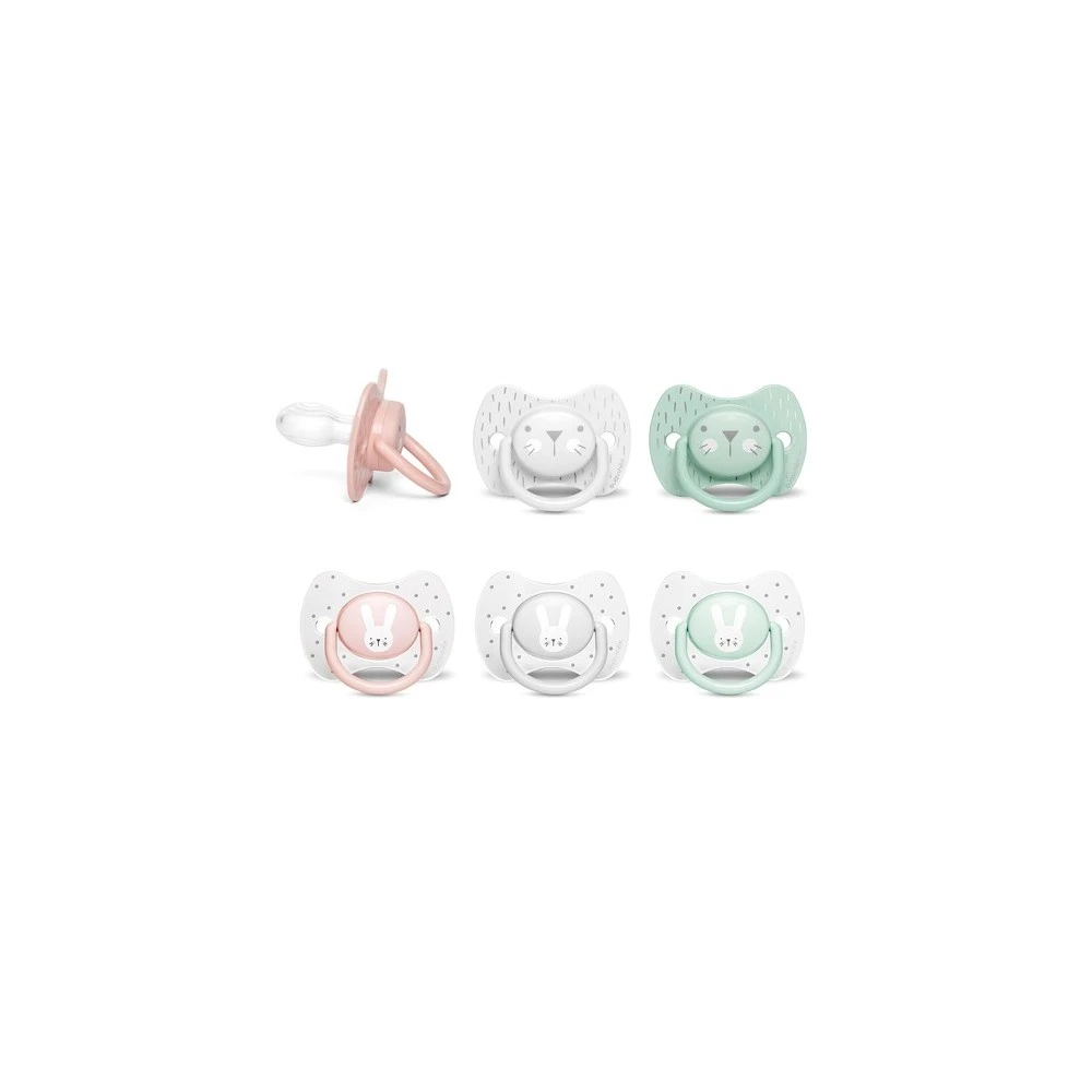 Su tetina fisiológica, al ser plana y simétrica, permite que ésta quede siempre bien colocada en la boquita del bebé ejerciendo la mínima presión sobre el paladar.