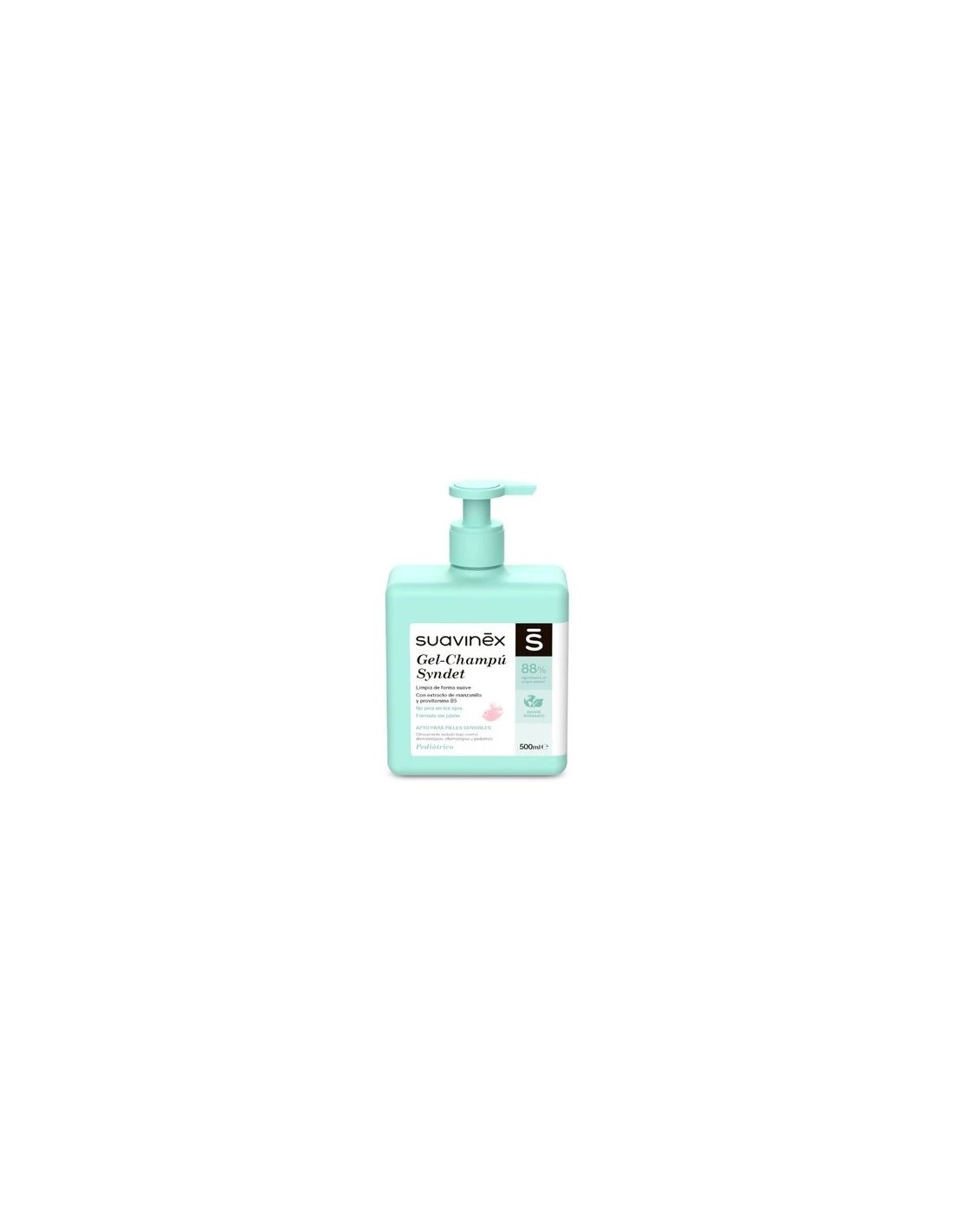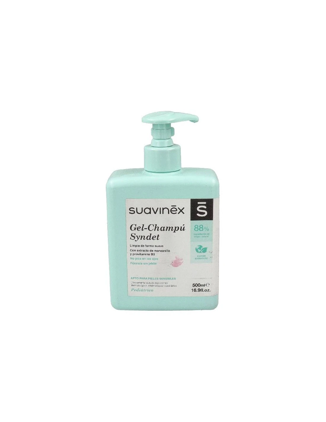 El gel-champú de Suavinex limpia de manera suave la piel y el cabello del bebé gracias a su fórmula syndet (sin jabón).