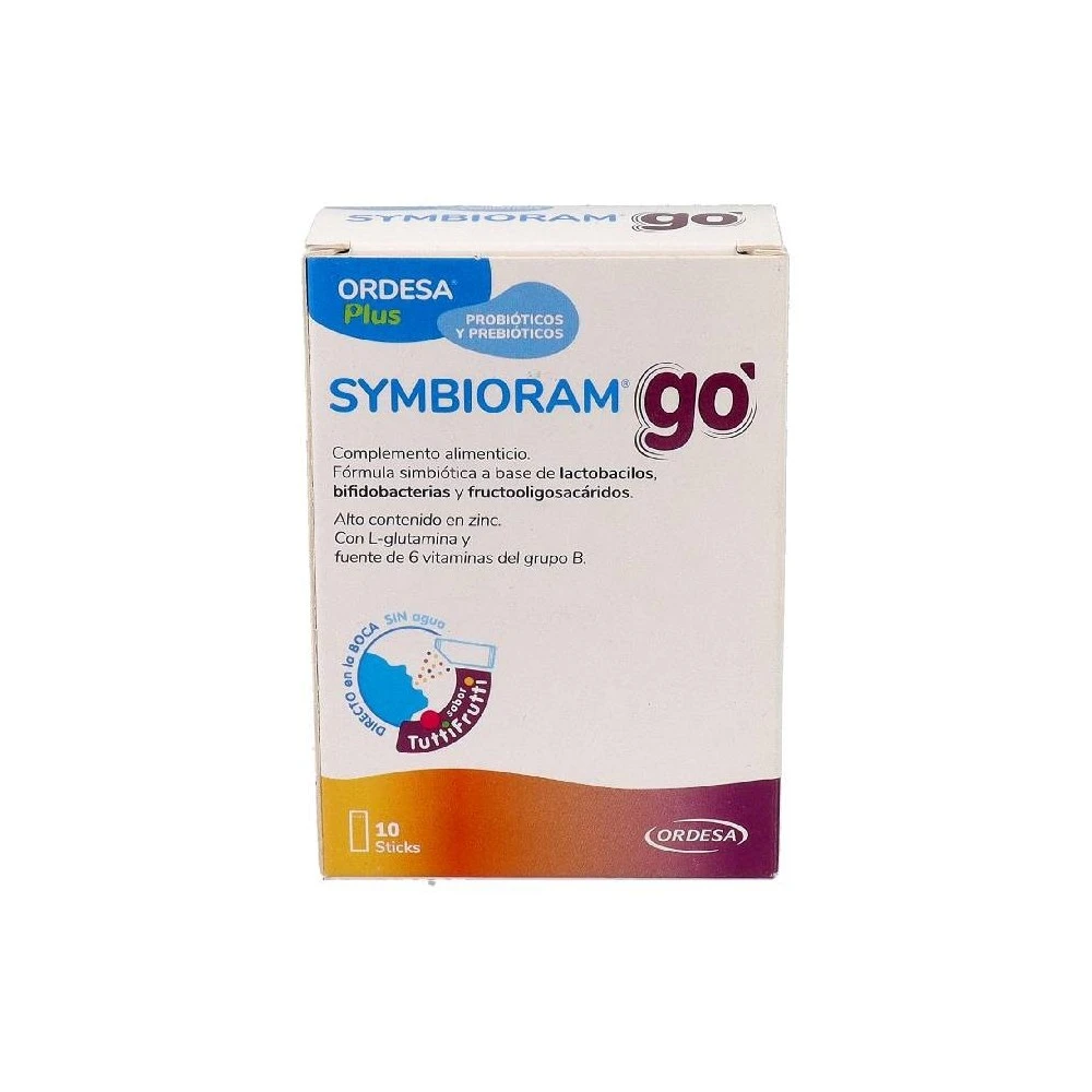 Symbioram GO es un complemento alimenticio que en cada sobre aporta Lactobacilos (Lactobacillus rhamnosus y Lactobacillus helveticus) en cantidad superior a 3×109 UFC, Bifidobacterias (Bifidobacterium infantis IM1) en cantidad superior a 3×109 UFC y Fructooligosacáridos prebióticos. Además, contiene L-glutamina y presenta un alto contenido en zinc y es fuente de vitaminas del grupo B. La vitamina B2 y la niacina contribuyen al mantenimiento de las mucosas en condiciones normales, la tiamina (vitamina B1) y la vitamina B6 contribuyen al metabolismo energético normal. El zinc y las vitaminas B6 y B12 contribuyen al funcionamiento normal del sistema inmune.